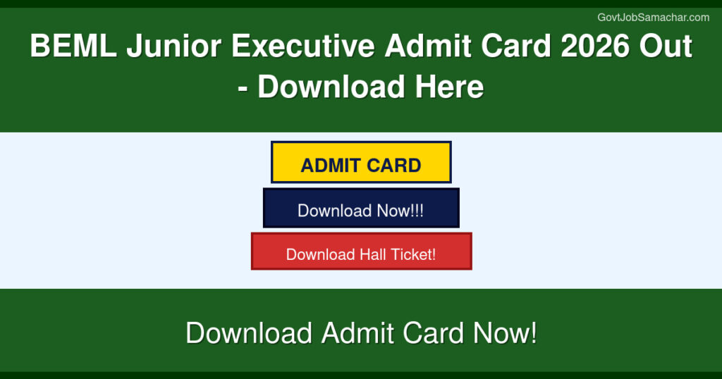 The Bharat Earth Movers Limited (BEML) has officially released the admit card for the Junior Executive recruitment drive scheduled for 2026. Candidates who have applied for various Junior Executive positions can now download their admit cards from the official registration portal at beml.registrationform.in. This is an important step in the recruitment process, and all eligible candidates must download their admit cards before the examination date to avoid any last-minute complications.