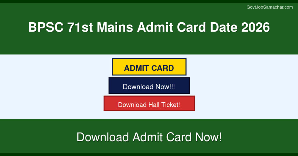 The Bihar Public Service Commission (BPSC) has announced the mains admit card date for the highly anticipated 71st Combined Competitive Examination scheduled for 2026. This prestigious recruitment drive aims to fill a total of 1,298 posts across various government departments in Bihar. The BPSC 71st examination is one of the most competitive recruitment processes in the state, attracting thousands of eligible candidates every year who aspire to secure positions in the Bihar Civil Service and other allied services.