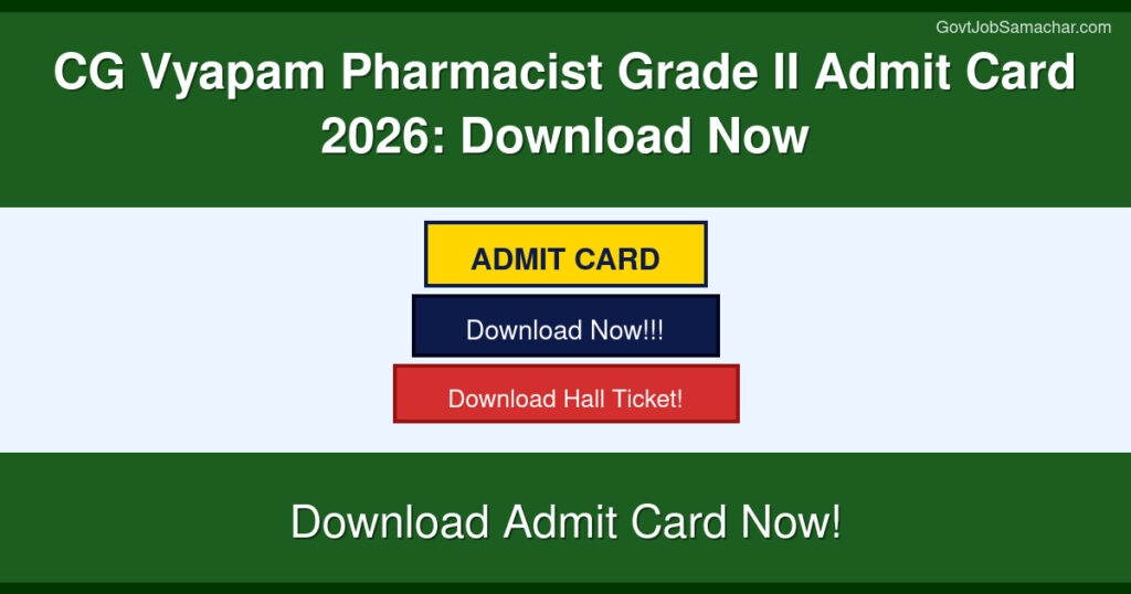 Chhattisgarh Professional Examination Board (CG Vyapam) has released the much-awaited admit card for Pharmacist Grade II recruitment 2026 on 6 April 2026. The admit card is now available for download on the official website vyapamcg.cgstate.gov.in. Candidates who have successfully applied for the 25 Pharmacist Grade II posts can download their hall tickets using their application number and date of birth. The written examination is scheduled to be conducted on 12 April 2026 across various examination centers in Chhattisgarh state.