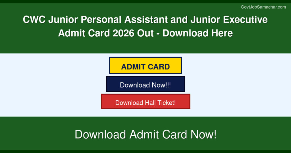 The written examination for CWC Junior Personal Assistant and Junior Executive (Rajbhasha) is scheduled to be conducted on 26 April 2026. The admit card contains crucial information including the candidate’s roll number, examination center details, timing, and other important instructions that must be carefully reviewed before appearing for the test. Candidates are strongly advised to download their admit cards immediately and keep multiple copies for reference during the examination.