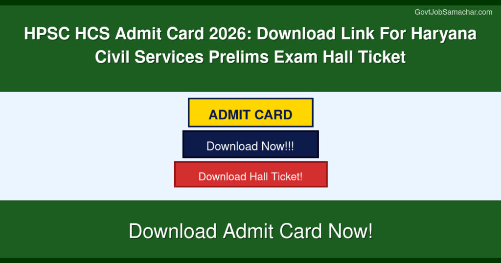 The Haryana Public Service Commission (HPSC) has announced the release of the HCS Admit Card 2026 for the Haryana Civil Services recruitment examination. Candidates who have successfully completed their application process for the HCS prelims examination can now download their admit cards from the official HPSC website. The admit card is a crucial document that serves as your entry pass to the examination hall and contains essential information including your roll number, examination center details, and other important instructions.