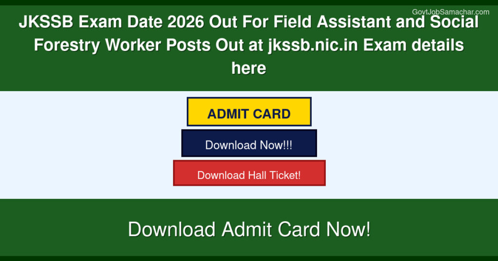 The Jammu and Kashmir Services Selection Board (JKSSB) has officially announced the exam date for Field Assistant and Social Forestry Worker positions for 2026. This recruitment drive aims to fill multiple vacancies across various departments in Jammu and Kashmir. Candidates who have been waiting for the official exam schedule can now plan their preparation accordingly as per the dates released on the official JKSSB website.