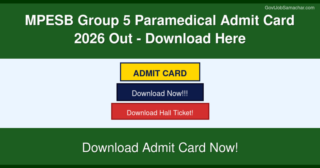 The Madhya Pradesh Employees Selection Board (MPESB) has released the admit card for Group 5 Paramedical recruitment examination 2026. Candidates who have applied for various paramedical positions can now download their admit cards from the official website esb.mp.gov.in. The admit card was released on 10 April 2026, and candidates must download it before the scheduled examination dates. This is an important document that candidates must carry to the examination center without fail.