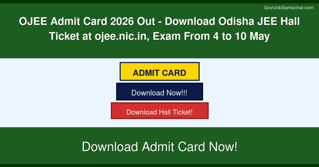 OJEE Admit Card 2026 Out – Download Odisha JEE Hall Ticket at ojee.nic.in, Exam From 4 to 10 May