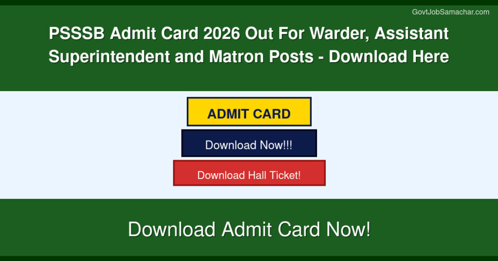 The Punjab Subordinate Staff Selection Board (PSSSB) has released the admit card for the Physical Efficiency Test (PET) for recruitment to the posts of Jail Warder, Assistant Superintendent, and Matron. The admit card was released on 17 April 2026 and is available for download on the official website. Candidates who have successfully cleared the written examination and are eligible to appear for the Physical Efficiency Test can now download their admit cards from the official portal.