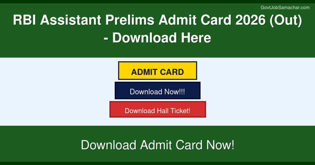 The Reserve Bank of India (RBI) has released the Admit Card for the Assistant Preliminary Examination 2026. Candidates who have registered for the RBI Assistant recruitment drive can now download their admit cards from the official RBI website. The preliminary examination is scheduled to be conducted in the coming months. This article provides comprehensive information about the admit card, exam dates, eligibility criteria, and step-by-step instructions to download your admit card.