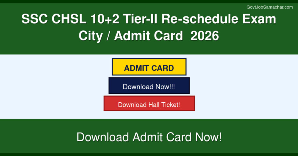 Home » Admit Cards » SSC CHSL 10+2 Tier-II Re-schedule Exam City / Admit Card 2026