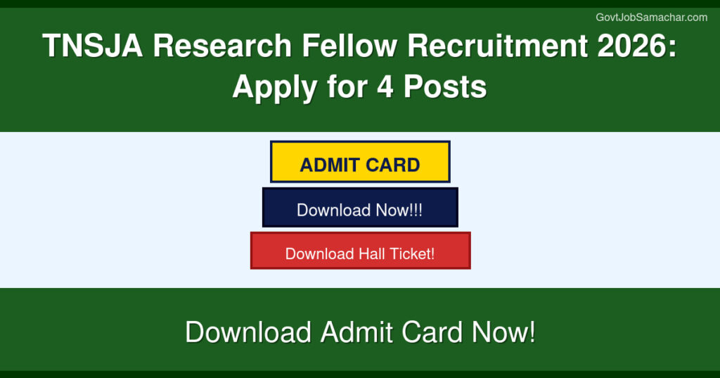 Tamil Nadu State Judicial Academy (TNSJA), Chennai under Madras High Court has released the admit cards for Research Fellow and Research Assistant posts. The academy has invited applications for 4 ad-hoc positions with consolidated pay. Candidates who applied for these positions can now download their call letters from the official website tnsja.tn.gov.in. The selection process involves scrutiny of applications followed by interview/viva-voce. This is an excellent opportunity for candidates interested in judicial research and legal administration to work with one of Tamil Nadu’s premier judicial training institutions.