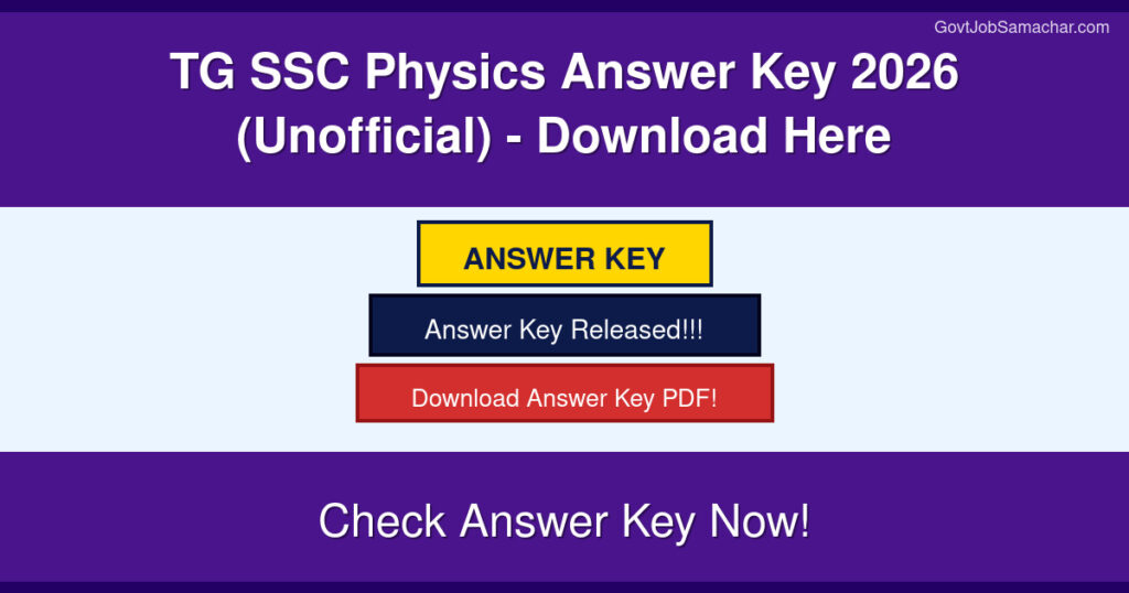 The TG SSC Physics Unofficial Answer Key 2026 has been prepared by subject matter experts immediately after the completion of the examination. This answer key serves as a valuable resource for students who appeared for the Physics examination and want to cross-check their responses. The unofficial answer key covers all sections of the Physics portion of the Physical Science paper and helps students estimate their performance before the official results are declared by BSE Telangana.