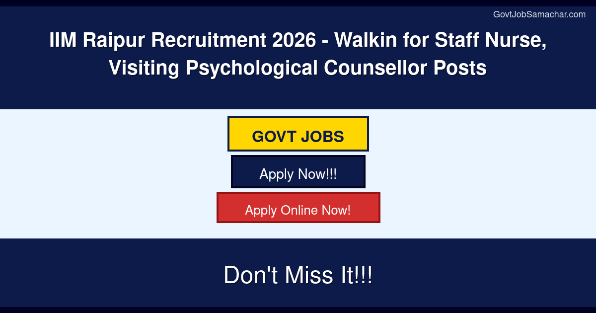 ESIC Vapi Specialist Recruitment 2026 – Walkin - 2026 Posts||GIPE Pune Project Coordinator Recruitment 2026 – Apply Online - 2026 Posts||Mizoram PSC Result 2026 OUT For Assistant Grade and Upper Division Clerk (Direct Link) – Download Scorecard @ mpsc.mizoram.gov.in||AP LAWCET 2026 Admit Card Out – Direct Hall Ticket Link, Exam Date, Exam City and Instructions at cets.apsche.ap.gov.in||AP EDCET Hall Ticket 2026 Out – Direct Download Link, Exam Date, Exam Centre and Instructions at cets.apsche.ap.gov.in||BITSAT Session 2 2026 Registration Started โ€“ Check Dates, Eligibility & Apply Online||BMC Recruitment 2026 – Apply Offline for IT Technician, Nurse and More Posts||Chhattisgarh High Court DEO Recruitment 2026 – Apply Online for 38 Data Entry Operator Posts - 2026 Posts||KVAFSU Assistant Research Officer Recruitment 2026 – Apply Online||IIM Raipur Recruitment 2026 – Walkin for Staff Nurse, Visiting Psychological Counsellor Posts - 2026 Posts||IIT Bhilai Recruitment 2026 – Apply Online for Project Manager, Senior Software Developer and More Posts||KVAFSU Technical Assistant Recruitment 2026 – Walkin - 2026 Posts||Ambedkar Nagar Hospital Recruitment 2026 – Walkin for Senior Residents Posts||NIT Rourkela Junior Research Fellow (JRF) Recruitment 2026 – Apply Online for 21 Posts - 21 Posts||Jag Pravesh Chandra Hospital Recruitment 2026 – Walkin for Senior Resident Posts||HPSC HCS Prelims Admit Card 2026 (Out) – Download Here||OSSSC RI ARI Mains Admit Card 2026 (Out) – Download Here||ISRO VSSC Junior Research Fellow Recruitment 2026 – Apply Online||UBSE Uttarakhand Board 10th 12th Result 2026: Date, Direct Link, Marksheet @ ubse.uk.gov.in||IIT Kanpur Project Post Doctoral Fellow Recruitment 2026 – Apply Online||