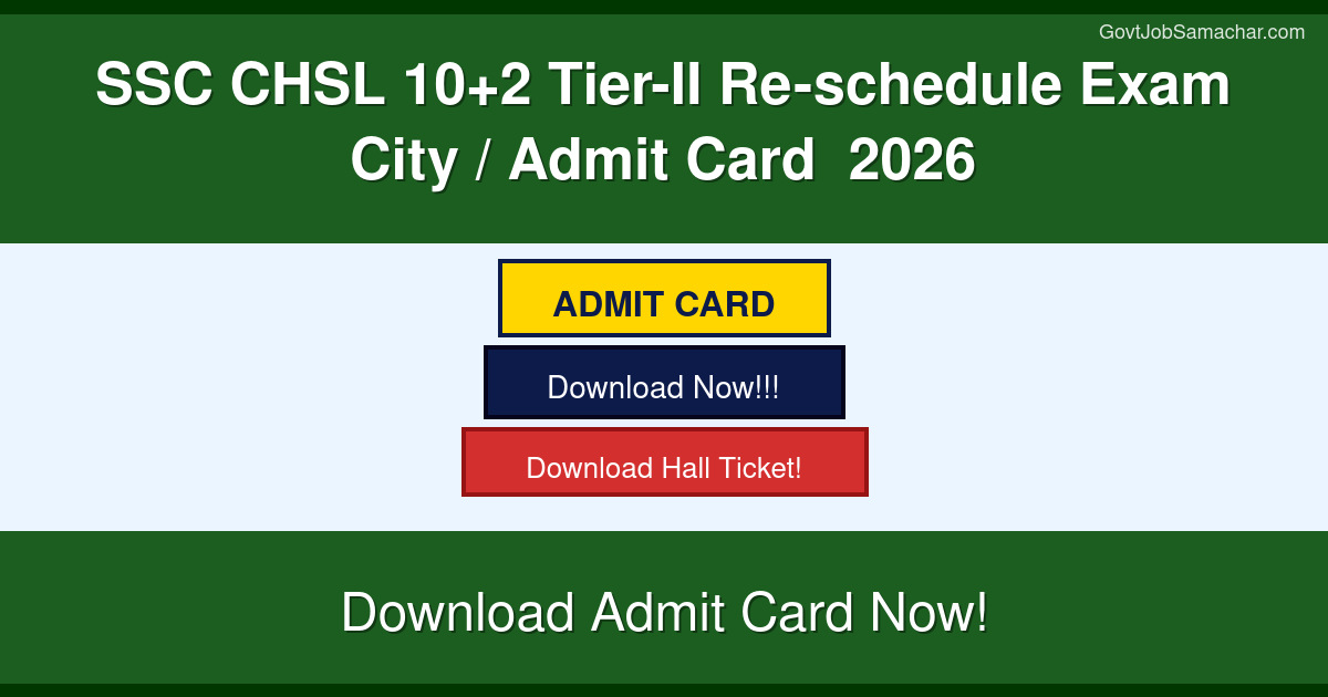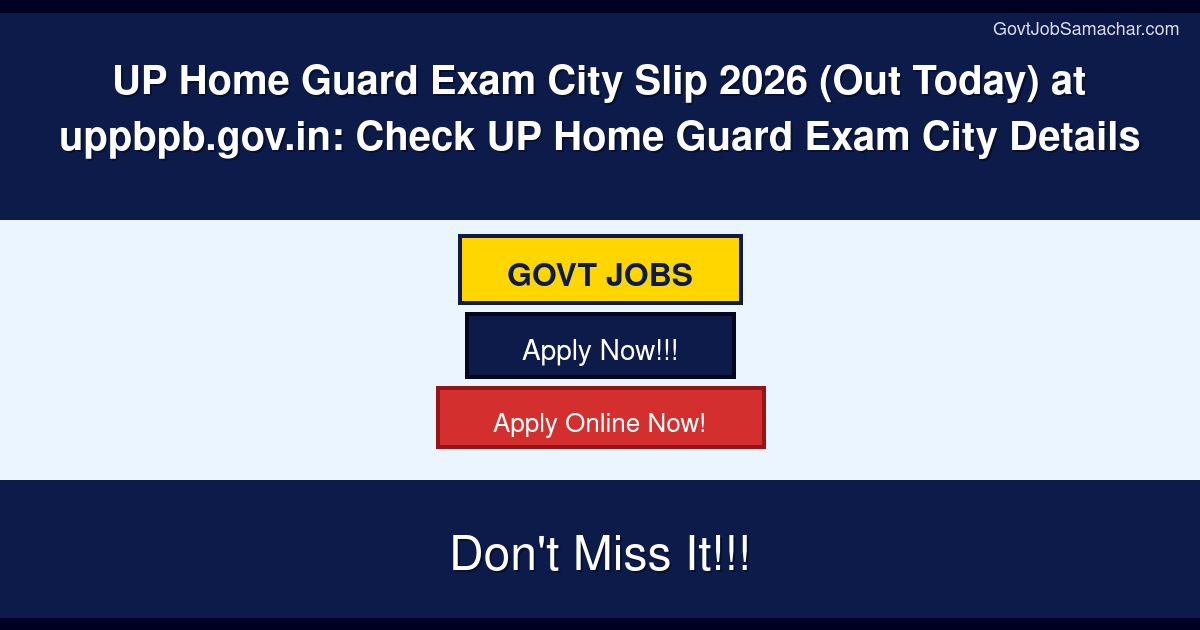 UP Home Guard Exam City Slip 2026 (Out Today) at uppbpb.gov.in: Check UP Home Guard Exam City Details - 2026 Posts||MAHATRANSCO Apprentice Recruitment 2026 – Apply Online for 28 Posts - 2026 Posts||ESIC Noida Faculty Recruitment 2026 – Walkin for 30 Professor, Associate Professor and More Posts||UPSSSC Group C Recruitment 2026 Notification Out – Apply Online for 209 Havaldar Instructor Posts - 209 Posts||Punjab & Haryana High Court Stenographer Result 2026 OUT (Direct Link) – Download Scorecard @ sssc.gov.in||APMSRB Recruitment 2026 – Apply Online for 59 Professor and Associate Professor Posts - 59 Posts||AIIMS Bibinagar Recruitment 2026 – Apply Online for 21 Senior Resident Posts - 2026 Posts||SSC CHSL Skill Test Admit Card 2026 Out: Download SSC CHSL Skill Test Hall Ticket at ssc.gov.in||MSMHA Recruitment 2026 – Apply Online for Non-ex-officio member Posts||HSSC Forest Guard (PMT) Admit Card 2026 (Out Today) – Download Here||Territorial Army CETF Recruitment Rally Notification 2026 Out (137 CETF Battalion TA – 39 Gorkha Rifles)||KSLSA Section Officer Recruitment 2026 – Apply Online for Section Officer Posts||PSSSB Admit Card 2026 Out For Warder, Assistant Superintendent and Matron Posts – Download Here||Central University of Rajasthan Non Teaching Recruitment 2026 – Apply Online for 11 Posts - 11 Posts||JAC Class 9th Result 2026 OUT – Check Jharkhand Board 9th Result Online at jac.jharkhand.gov.in||UPCISB Recruitment 2026 – Apply Online for 2,085 Clerk, Junior Manager and More Vacancies - 2,085 Posts||HPSC PGT Reschedule Exam Date 2026 Out at hpsc.gov.in – Check Exam Dates & Schedule at hpsc.gov.in||DRDO VRDE Junior Research Fellow Recruitment 2026 -Apply Online - 03 Posts||Patna High Court Computer Operator cum-Typist Recruitment 2026 – Apply Online for 48 Posts - 2026 Posts||SSB Odisha Librarian Recruitment 2026 Notification Out – Apply Online for 225 Posts - 225 Posts||