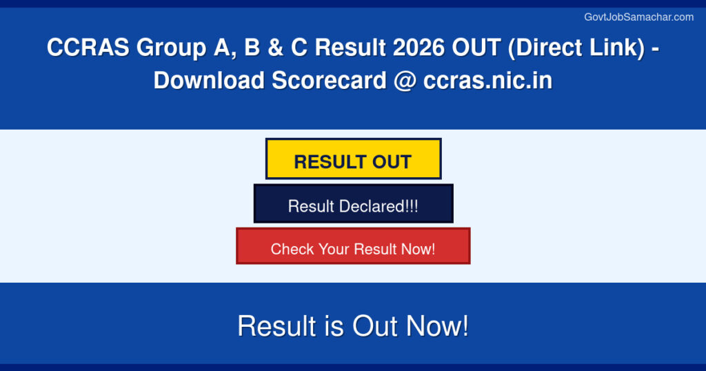 The Central Council for Research in Ayurvedic Sciences (CCRAS) has officially released the Result 2026 for Group A, B & C recruitment examination. Eligible candidates who appeared for the examination can now download their scorecards and check their results on the official CCRAS website at ccras.nic.in. This notification is a crucial update for all candidates waiting for their results. The scorecard download link has been activated, allowing candidates to view their marks, rank, and other relevant details. Candidates who qualify in this examination will be eligible for further rounds of selection as per the recruitment process.