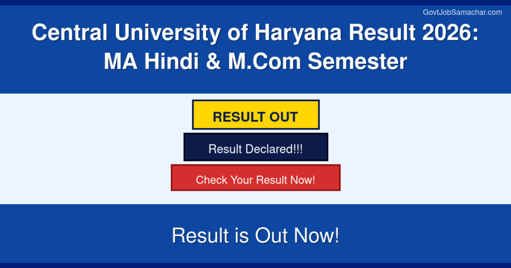 Central University of Haryana (CUH), Mahendergarh has officially declared the semester results for Master of Arts (Hindi) and Master of Commerce courses for the academic session 2025-26. The results have been published for both 1st and 2nd semester regular term end examinations conducted in December 2025. Students who appeared for these examinations can now check their individual marksheets and download provisional scorecards through the official result portal at cuh.ac.in.