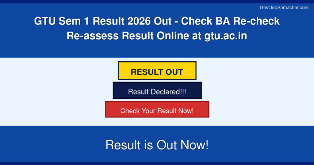 Gujarat Technological University (GTU) has announced the results for BA (Bachelor of Arts) 1st Semester Re-check and Re-assess examinations conducted in December 2025. The results have been officially released on the GTU official website gtu.ac.in on April 7, 2026. Students who appeared for the re-check and re-assess examinations can now access their results online through the official portal. This announcement provides relief to thousands of students who were awaiting their re-evaluated scores.