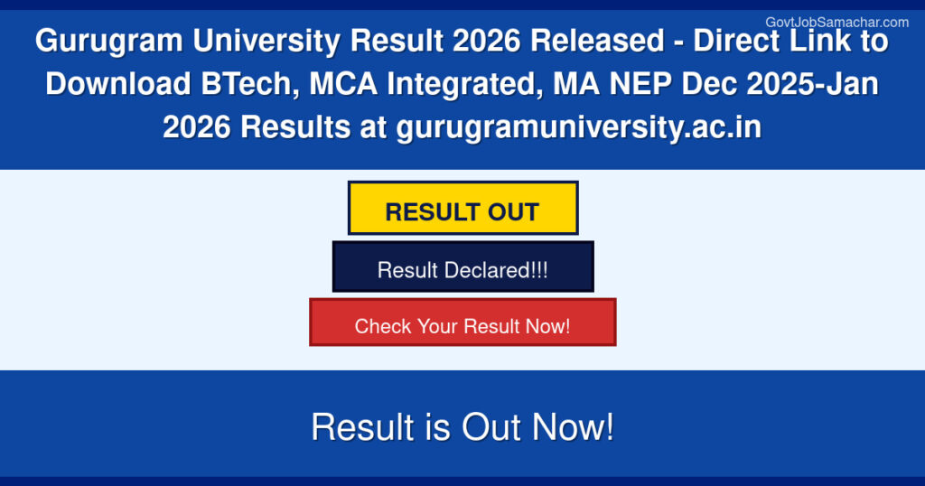 Gurugram University has officially released the results for BTech, MCA Integrated, and MA NEP programs conducted in December 2025 and January 2026. Students who appeared in these examinations can now download their results directly from the official university website at gurugramuniversity.ac.in. This notification provides comprehensive information about result downloading procedures, eligibility criteria, important dates, and direct download links for all candidates who participated in the examination.