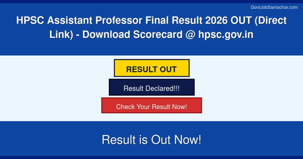 The Himachal Pradesh Public Service Commission (HPSC) has officially announced the Assistant Professor Final Result 2026 on April 17, 2026. This is a significant announcement for all candidates who appeared in the HPSC Assistant Professor recruitment examination. The final result has been made available on the official website at hpsc.gov.in, allowing candidates to download their individual scorecards and review their performance. The release of the final result marks the completion of the selection process, and qualified candidates can now expect further communication regarding their appointment procedures.