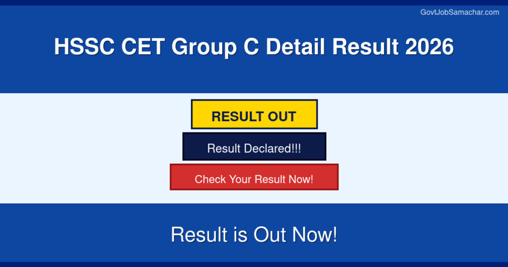 The Haryana Staff Selection Commission (HSSC) has released the detailed result for the Haryana State Common Eligibility Test (CET) Group C recruitment examination 2026. This is an important announcement for candidates who appeared in the HSSC CET Group C examination and are awaiting their results. The detailed result provides comprehensive information about the performance of candidates and their eligibility for further selection processes. Candidates who have applied for the HSSC CET Group C Recruitment 2025 can now access their detailed results through the official HSSC portal.