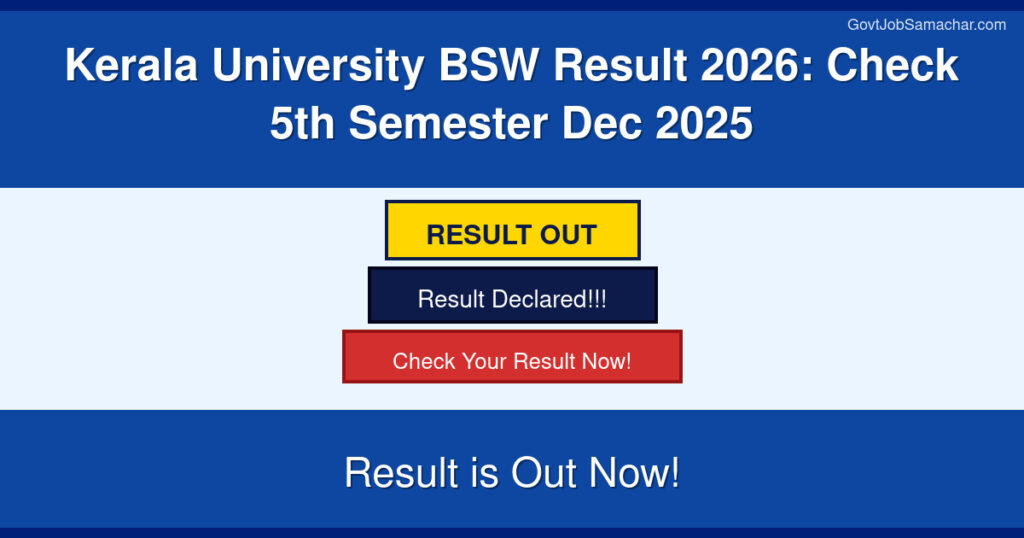 The University of Kerala has officially released the BSW Result 2026 for the Fifth Semester Bachelor of Social Work (BSW) (315) (CR-CBCSS) Degree Examination held in December 2025. This result announcement is crucial for BSW students as it marks the completion of their fifth semester examinations and enables them to progress towards their final semester. The Kerala University Result 2026 has been published online on the official examination portal at exams.keralauniversity.ac.in, which can be accessed through the main university website keralauniversity.ac.in. Students who appeared for the December 2025 examination can now check their performance in both theory and fieldwork components of their Social Work programme.
