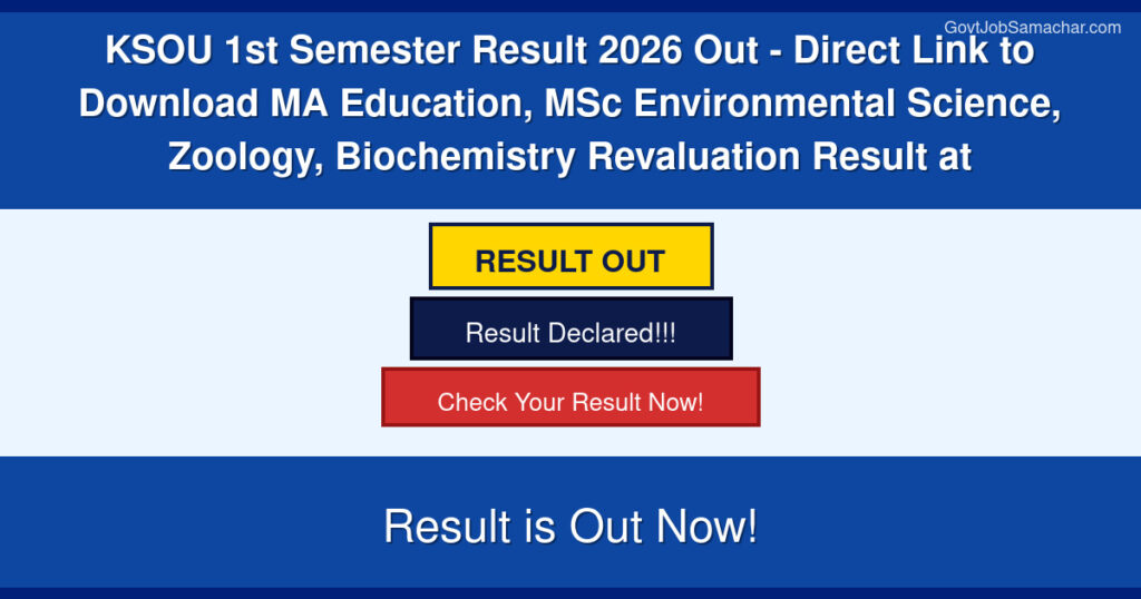 Karnataka State Open University (KSOU) has officially announced the release of 1st Semester Result 2026 for various postgraduate programs. The results have been made available on the official portal ksouportal.com as of April 6, 2026. This announcement covers the Master of Arts (MA) Education, Master of Science (MSc) Environmental Science, MSc Zoology, and MSc Biochemistry programs for the 2024-25 academic year, specifically for the January cycle and repeaters.