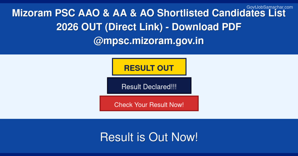 Mizoram Public Service Commission (MPSC) has officially released the highly anticipated shortlisted candidates list for the positions of Assistant Accounts Officer (AAO), Assistant Audit Officer (AA), and Accounts Officer (AO) on 10th April 2026. This announcement marks a significant milestone for thousands of aspirants who have been eagerly waiting for their results. Candidates who participated in the written examination can now access their individual scorecards and check whether they have qualified for the next round of the selection process through the official MPSC website at mpsc.mizoram.gov.in.