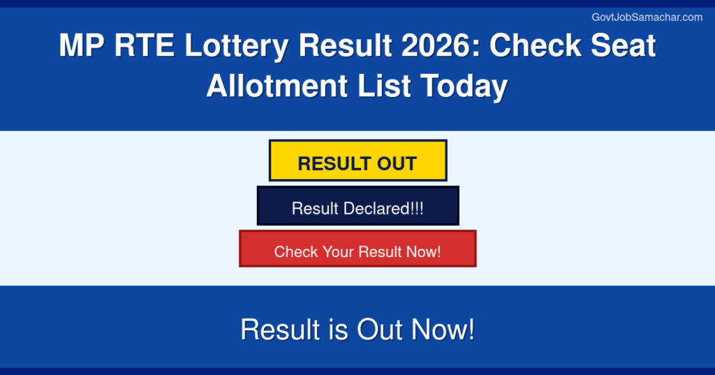 The Madhya Pradesh School Education Department has released the MP RTE Lottery Result 2026 for admissions under the Right to Education (RTE) Act’s 25 percent reserved seats. This lottery result covers admissions for Nursery, KG-1 (LKG), KG-2 (UKG), and Class 1 in private unaided schools across Madhya Pradesh for the academic session 2026-27. The results were announced today at 2:00 PM on the official RTE portal at rteportal.mp.gov.in, providing admission opportunities for economically weaker sections and disadvantaged category students.