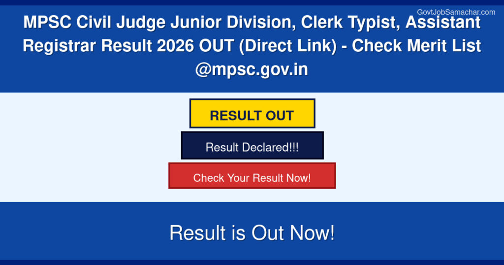 Home » Results » MPSC Civil Judge Junior Division, Clerk Typist, Assistant Registrar Result 2026 OUT (Direct Link) – Check Merit List @mpsc.gov.in
