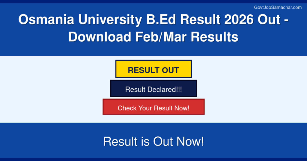 Osmania University has officially released the B.Ed February/March 2026 examination results, marking an important milestone for teacher education students in the current academic session. The results have been published on the official website osmania.ac.in through the dedicated Examination Results portal. Students who appeared for the B.Ed Feb/Mar 2026 examinations can now access their results online by visiting the official website and entering their hall ticket numbers. This result declaration is crucial for students pursuing Bachelor of Education programs under Osmania University, as it determines their academic progress and eligibility for further studies and teaching opportunities.