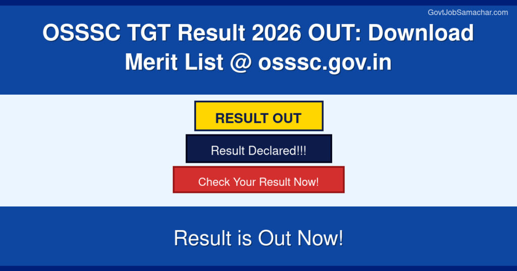 The Odisha Sub-ordinate Staff Selection Commission (OSSSC) has officially declared the OSSSC TGT Result 2026 on 4th April 2026. The provisional merit list has been released for Trained Graduate Teacher (TGT) Science posts including Physical Chemistry Mathematics (PCM) and Chemistry Botany Zoology (CBZ) subjects. Candidates who appeared for the main examination conducted on 14th and 15th November 2025 can now check their qualifying status through the official portal osssc.gov.in. This result announcement marks a crucial step in the selection process for teaching positions in Odisha government schools.