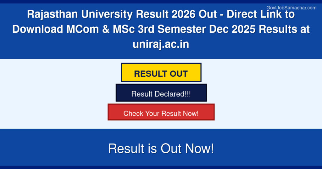Rajasthan University Result 2026 Out – Direct Link to Download MCom & MSc 3rd Semester Dec 2025 Results at uniraj.ac.in