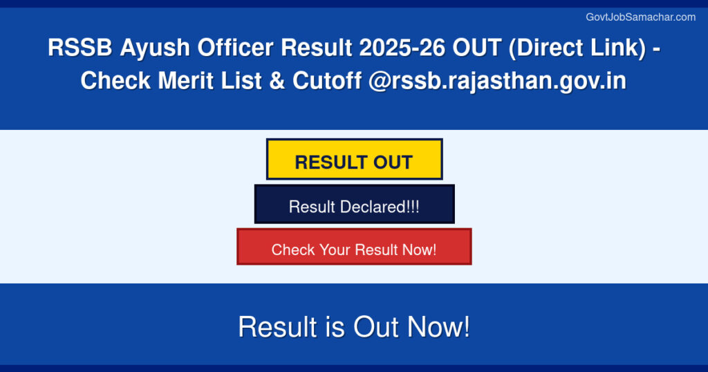 The Rajasthan Staff Selection Board (RSSB) has officially announced the RSSB Ayush Officer Result 2025-26 on April 10, 2026. This is a significant announcement for all candidates who appeared for the Ayush Officer examination conducted by RSSB. The result declaration marks a crucial milestone in the recruitment process, allowing candidates to check their performance and merit list status through the official portal.