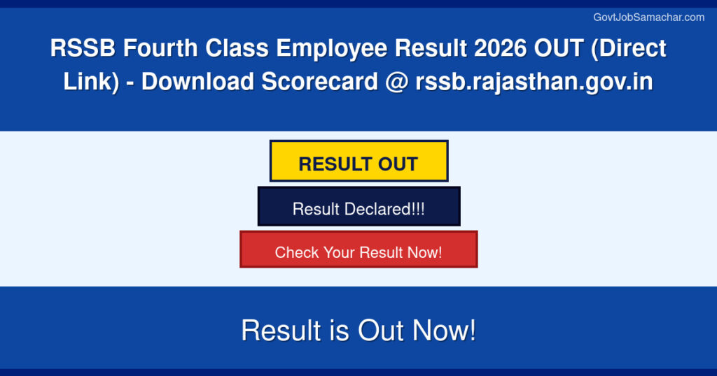 The Rajasthan Staff Selection Board (RSSB) has officially announced the Fourth Class Employee Result 2026. This is a significant announcement for thousands of candidates who have been waiting to check their performance in the recruitment examination. The result has been released on the official RSSB website, and candidates who appeared in the examination can now download their scorecards and check their selection status.