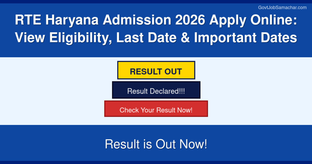RTE Haryana Admission 2026 is now open for admission under the Right to Free and Compulsory Education (RTE) Act, 2009. The Haryana government invites online applications from eligible candidates for free admission to class 1 and other classes in private schools across the state. This admission process is designed to provide equal educational opportunities to children from economically weaker sections and disadvantaged backgrounds by reserving 25% seats in private institutions.