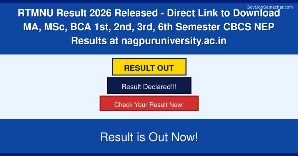 ✓ GOOD NEWS: Rashtrasant Tukadoji Maharaj Nagpur University (RTMNU) has officially released the results for 1st, 2nd, 3rd semester MA, MSc, and 6th semester BCA Winter 2025 examinations. Students can now download their results from the official website.