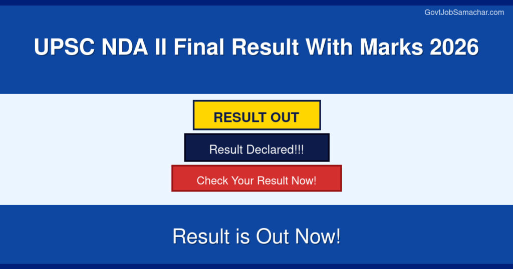 The UPSC NDA II Final Result with marks 2026 has been released on the official UPSC website, enabling candidates to check their performance and final selection status. This recruitment is open for candidates who have passed their 12th standard examination, making it an excellent opportunity for young aspirants to build a career in the defence sector. The selected candidates will undergo rigorous training at the National Defence Academy, Khadakvasla, Pune, and the Indian Naval Academy, Ezhimala, Kerala.