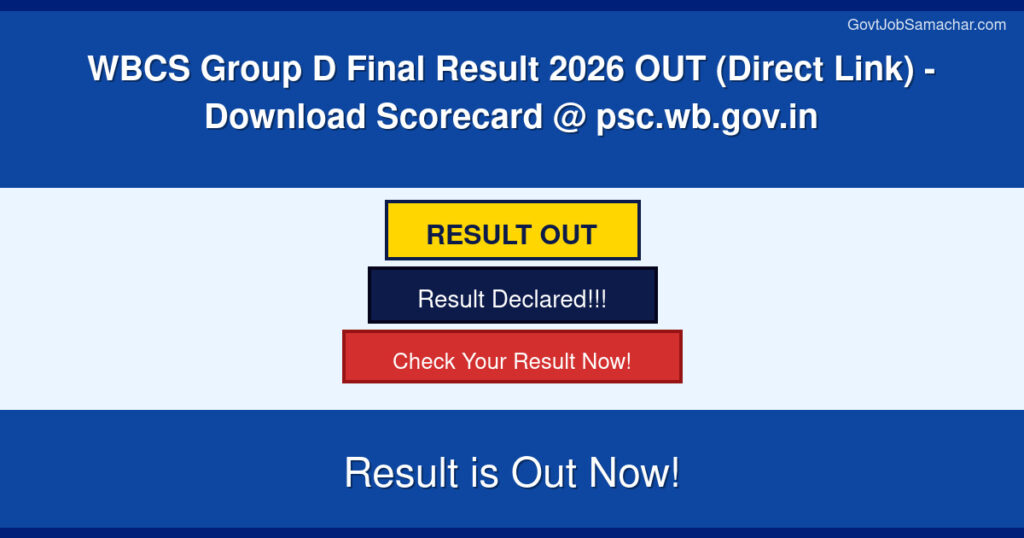 Home » Results » WBCS Group D Final Result 2026 OUT (Direct Link) – Download Scorecard @ psc.wb.gov.in